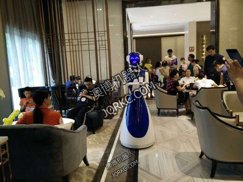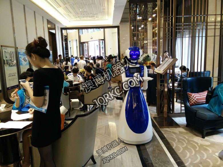 餐廳營銷機器人酒店送水機器人商業服務機器人正在為大家服務機器人服務員在樓盤營銷中心工作機器人服務端送茶水