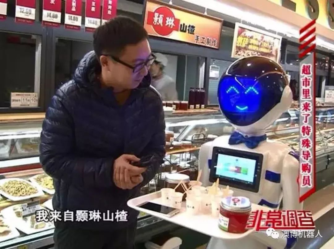 圖為澳博服務機器人歡歡在超市使用