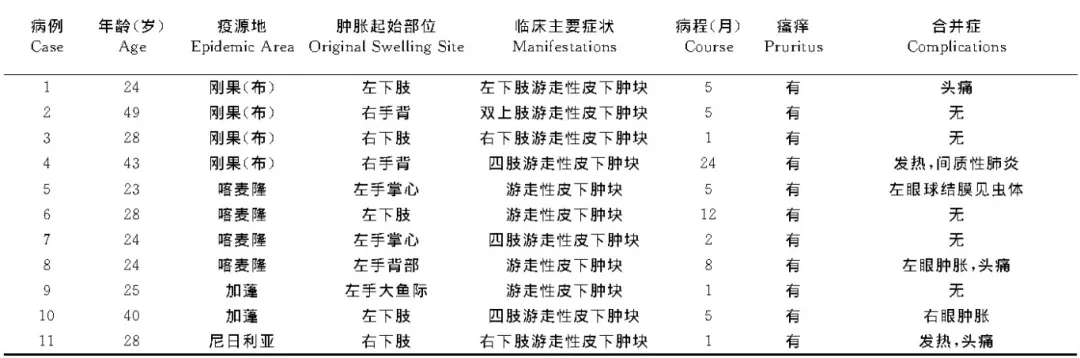 羅阿絲蟲成蟲主要寄生于人體的皮下組織或筋膜層中,包括背、胸、四肢、腋下、腹股溝、陰莖、頭皮及眼等部位,并可在皮下深部結締組織內自由移動[3]。