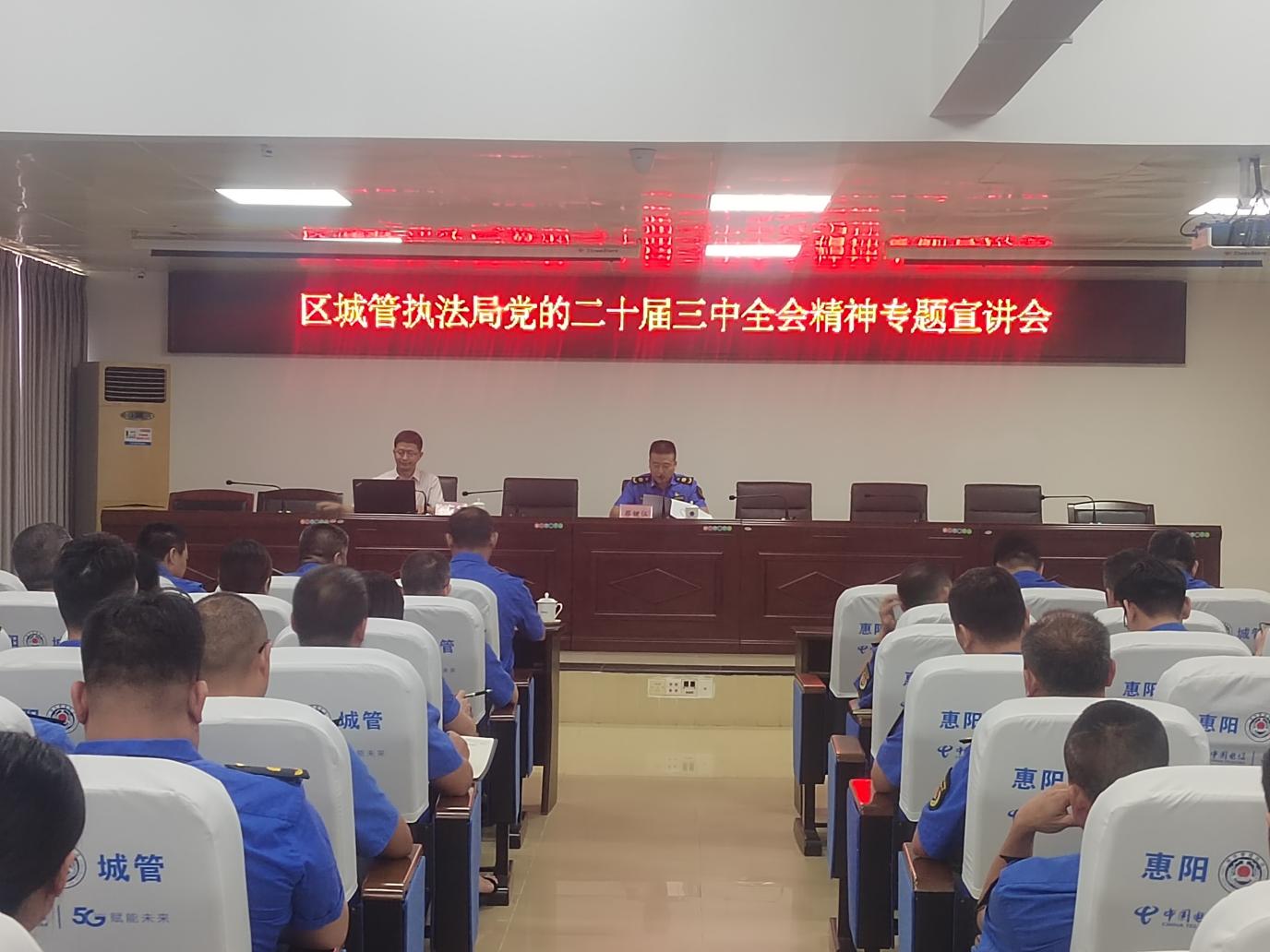 為深入學(xué)習(xí)領(lǐng)會黨的二十屆三中全會精神,9月4日,惠陽區(qū)城管執(zhí)法局召開黨的二十屆三中全會精神專題宣講會。會議邀請了區(qū)學(xué)習(xí)貫徹黨的二十屆三中全會精神特色宣講隊(duì)(團(tuán))成員、區(qū)委黨校副校長徐楊作宣講,區(qū)城管執(zhí)法局全體在編干部職工參加了會議,黨組書記、局長蔡鍵伍主持并講話。