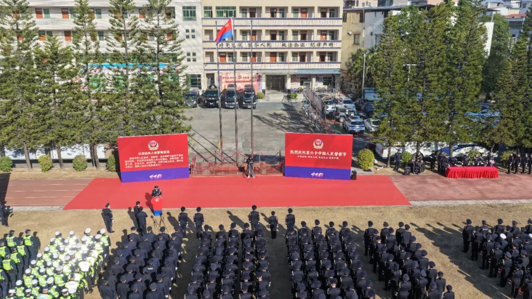 為熱烈慶祝第六個中國人民警察節,進一步凝聚警心、鼓舞士氣,1月10日上午,惠州市公安局惠陽分局在惠陽公安巡警特警大隊隆重舉行升警旗暨榮譽表彰儀式。副區長、區公安分局黨委書記、局長林建彬帶領班子成員及民輔警代表500余人參加活動,共同見證榮光時刻,共話使命擔當。儀式由分局黨委副書記、政委曾庚華主持。