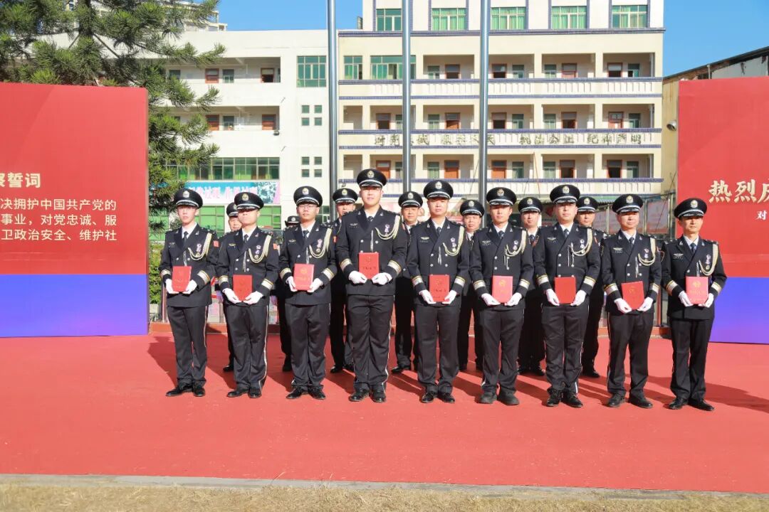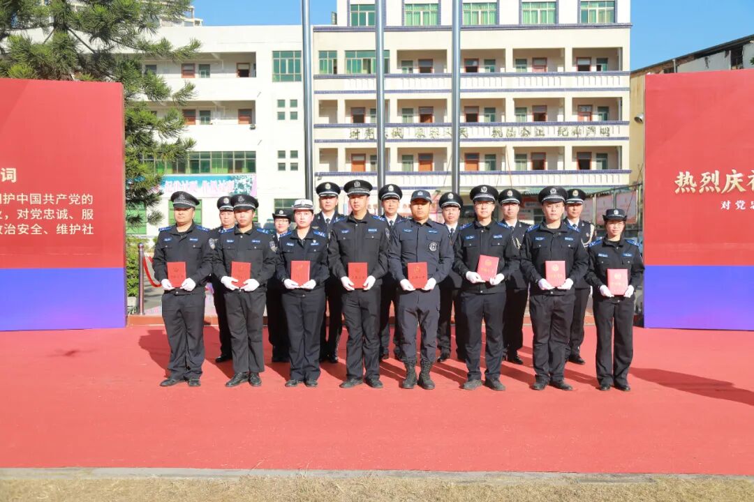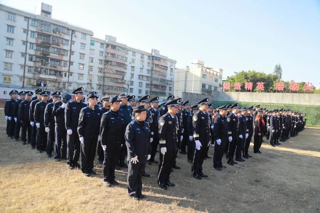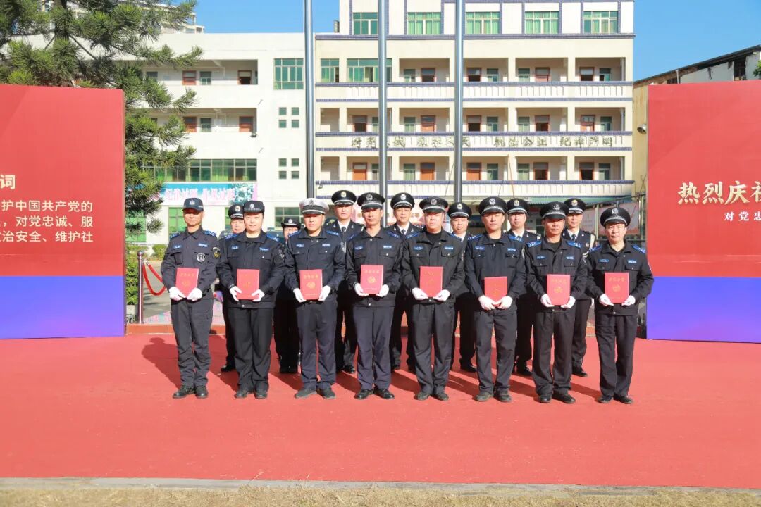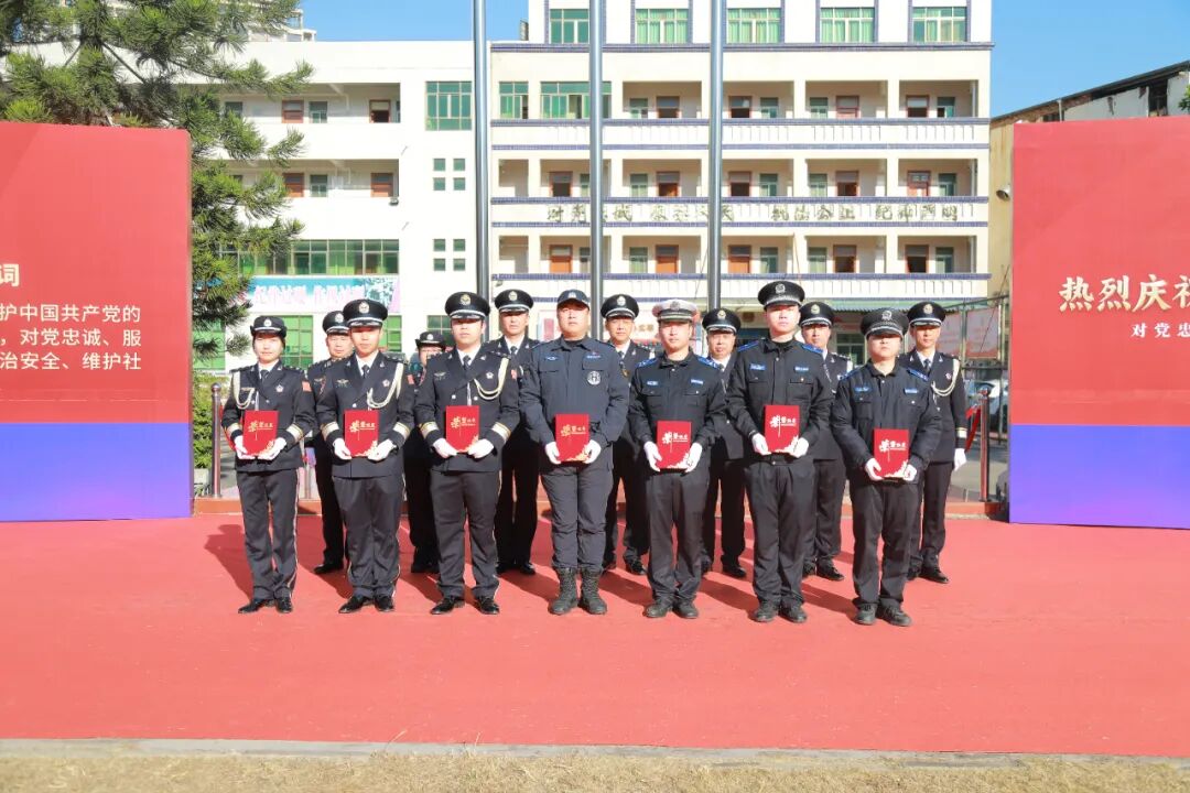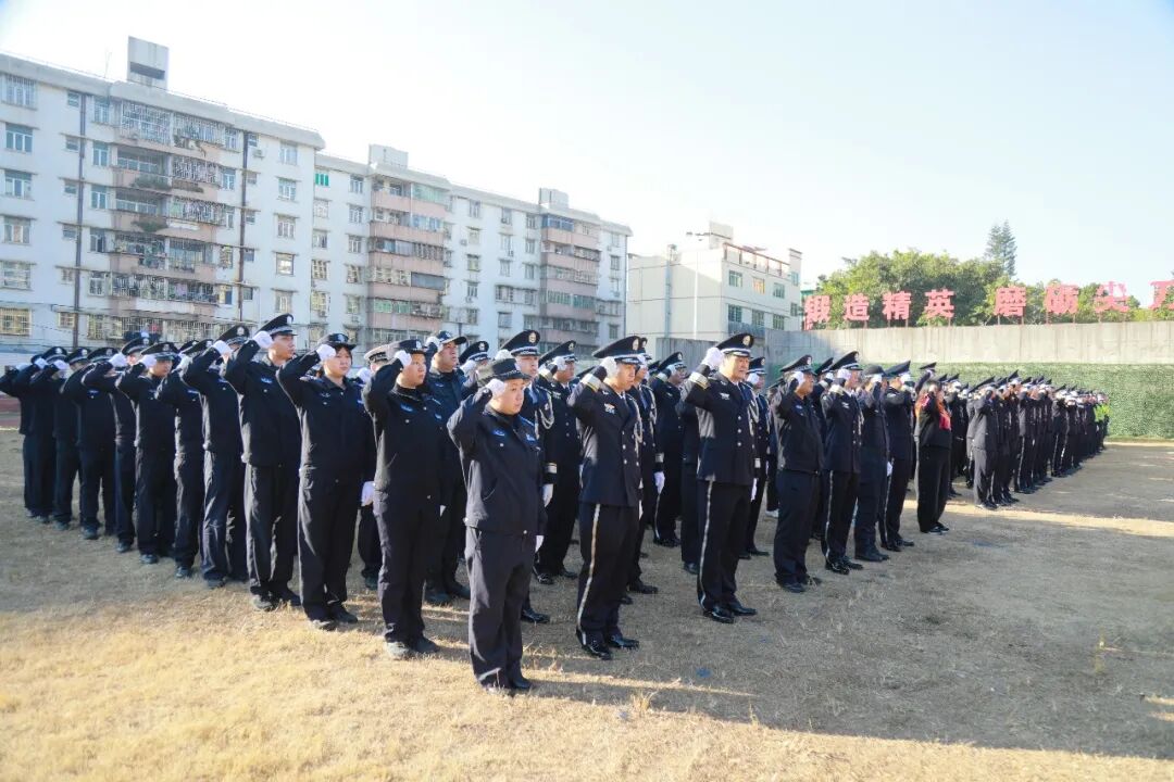 警歌畢,宣誓環節拉開帷幕。建彬同志手持誓詞,面向警旗莊嚴領誓。“我宣誓!”當“誓”字響徹現場,全體人員迅速右手握拳舉起,逐句跟誦《公安機關人民警察誓詞》。“堅決擁護中國共產黨的絕對領導,矢志獻身崇高的人民公安事業……”鏗鏘有力的誓言回蕩在廣場上空,穿透云霄,既是對從警初心的回望,更是對未來使命的承諾,充分展現了惠陽公安對黨忠誠、服務人民、執法公正、紀律嚴明的堅定決心。