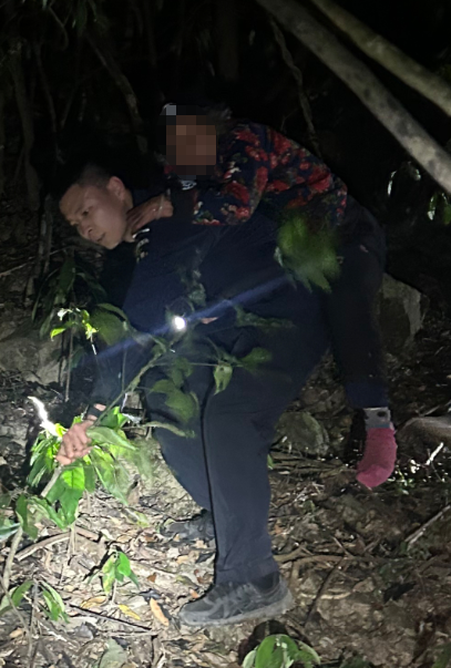 “這里看到有人進,重點排查這一片。”“搜救犬往這個方向了,跟上!”“這里泥路很滑,大家小心!”搜救人員的聲音在對講機中不斷響起。由于山林地形復雜,有些地方路陡難行,甚至根本就沒有路,到處都是荊棘和深坑,搜救人員只能靠手電筒一點一點摸著路。此時距離家屬求助已過去48小時,但大家仍未得到期待中的回應,救援工作更加焦灼。