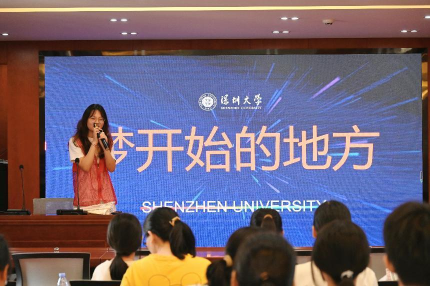 活動開始前,實踐團成員向到場的學生和家長發放深圳大學宣傳手冊,播放深圳大學宣傳片,對深圳及深圳大學的基本情況、衣食住行、獎學金情況等方面作了具體介紹,緊接著,實踐團組織了有關深圳大學情況的有獎問答和觀看注意力測試視頻兩個簡單的熱場活動。