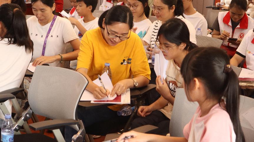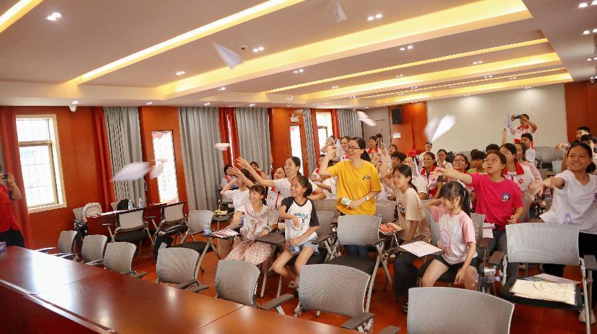 最后是團輔游戲環節,學生和家長們將自己的煩惱寫在紙上,折成紙飛機投向臺上,主持人從中抽取部分煩惱,并由現場其他人提供解決意見。這個環節讓學生和家長在互動中釋放了溝通的壓力,很好地增進了對彼此的了解。